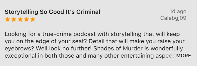 Shades of Murder transcends the gore and headlines, exploring the most chilling and disturbing cases of homicide across continents and over the centuries.